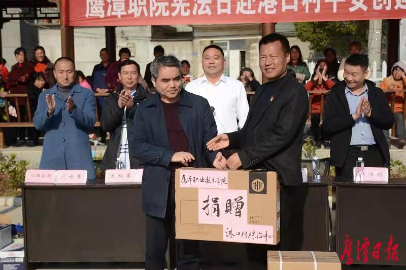 12月4日,为推进beat365挂点港口村平安创建工作,高质量完成市平安办部署的挂扶平安创建任务,beat365六十多名师生来到信江新区江北办事处港口村文化广场,开展“宪法日”平安创建“办十事”活动。院长易想春率多名处室、系部负责人参加,副院长唐三一主持活动。