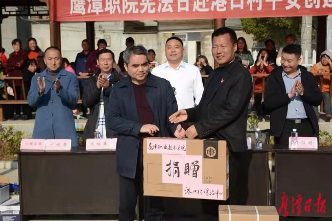 院长易想春向“港口村综治中心”赠送电脑
