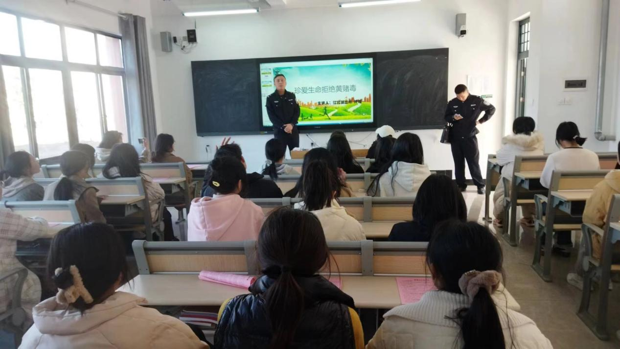 为进一步加强校园毒品预防教育工作,增强青年识毒、防毒、拒毒意识,提高自我保护能力,2月21日下午,保卫处、管理系共同邀请江北派出所干警来beat365开展禁毒知识宣讲活动。本次活动由江北派出所许警官带队主讲,通过发放宣传资料和“展板+讲座”的形式进行,300余名管理系22级新生现场参与了活动,40余名班级安全信息员通过教室互动的方式学习。