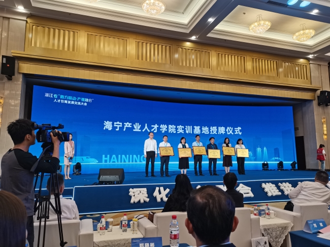 在海宁市汉峘产业人才学院,企业负责人就汉峘产业人才学院培训流程和学生实训基地情况作了详细介绍,双方就学生实习、就业培训等有关事项进行了细致讨论。企业负责人表达了与我校在人才联合培养、实习实训开展等方面进一步合作的意愿。