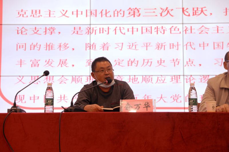 随后,俞万华强调学习宣传贯彻《习近平谈治国理政》第三卷是全体教师的重大政治责任。第一,教师必须发挥示范带头作用,切实将理论和行动统一到习近平新时代中国特色社会主义思想上来。第二,教师必须大力弘扬理论联系实际的学风,做到知行合一,学以致用,把学习成果落实到推动学院高水平发展上来,落实到为师生解决实际问题上来。第三,教师要以永远在路上的精神开展抓作风建设行动,切实改进思想作风和工作作风,把心思和精力用在专注工作、真抓实干和推动落实上。最终成为一个有理想、有本领、有担当的时代新人。