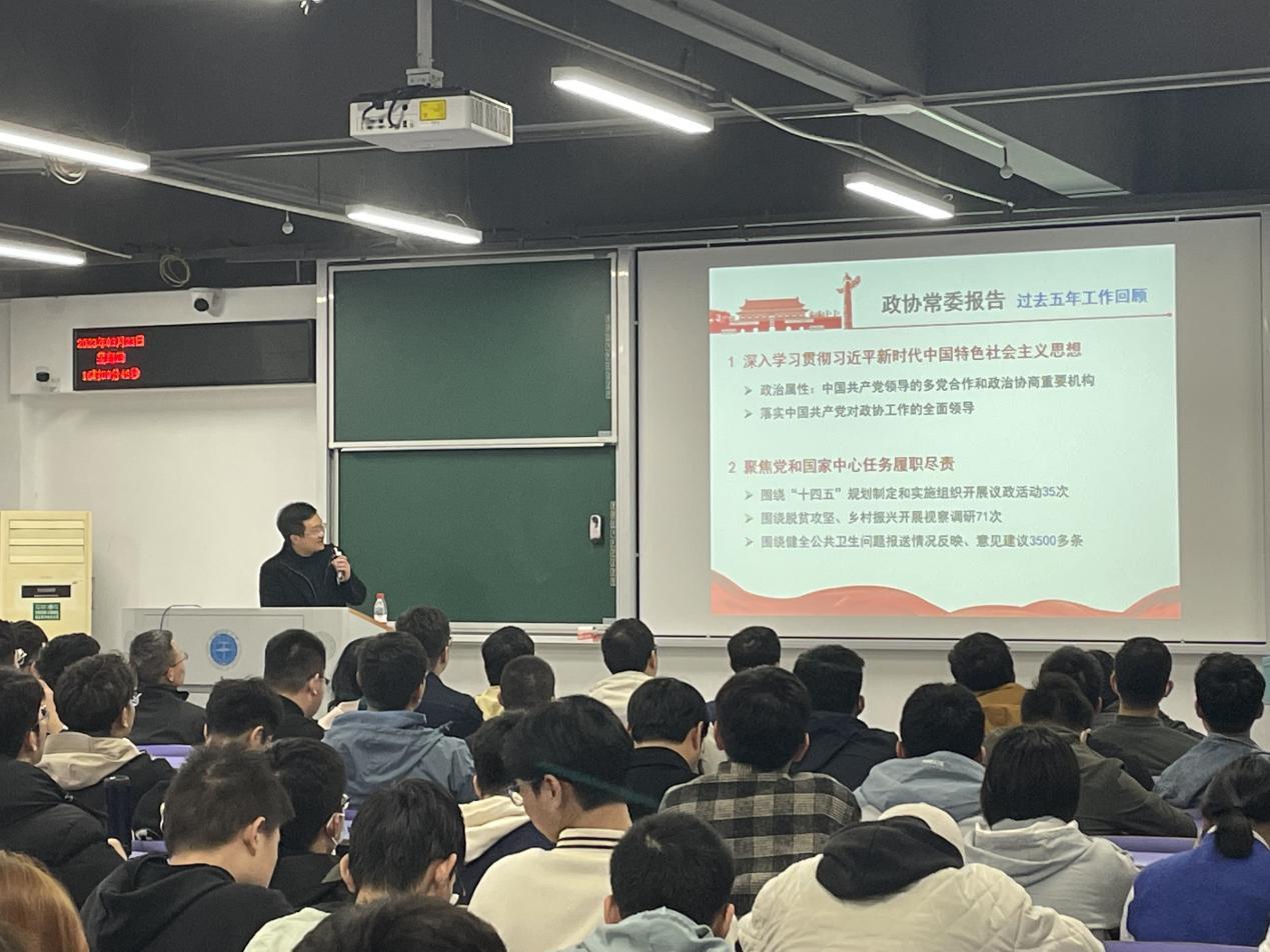 查看详情3月23日下午,pp电子官方网站召开传达学习2023年全国两会精神专题报告会。全国政协委员、院长丁华锋作传达学习全国两会精神专题报告,团委书记杜育主持会议。 丁华锋对会议基本情况、政协常委报告关键点、政协换届选举情况、国务院机构改革方案进行介绍,从…