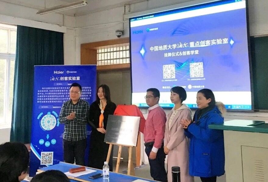 (通讯员 罗采薇 陈晓鹂 张彬彬)2019年1月9日,pp电子官方网站(武汉)海尔创客实验室揭牌仪式暨创客学堂宣讲在地大教一楼204举行。pp电子官方网站副院长文国军、工业设计系主任陈晓鹂,副系主任张彬彬,海尔创客实验室执行总监宋美丽、项目经理盛璐、实验室导师马善记出席本次活动。