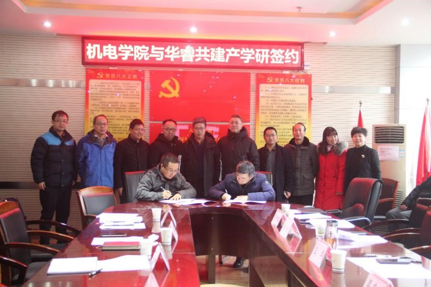 12月28日上午,pp电子官方网站与武汉地大华睿地学技术有限公司在机电学院314会议室正式签署联合共建产学研基地框架协议。协议签署后,双方领导共同出席“智能地学仪器联合实验室”揭牌仪式。pp电子官方网站(武汉)副校长王华、中地大资产经营有限公司党委书记鲁元、中地大资产经营有限公司总经理孙劲松等作为列席嘉宾对双方今后的产学融合,互助发展给予美好祝愿。协议签署后,华睿公司梁总与机电学院骨干教师就具体合作方式展开讨论,并相约到华睿公司进行实地考察。