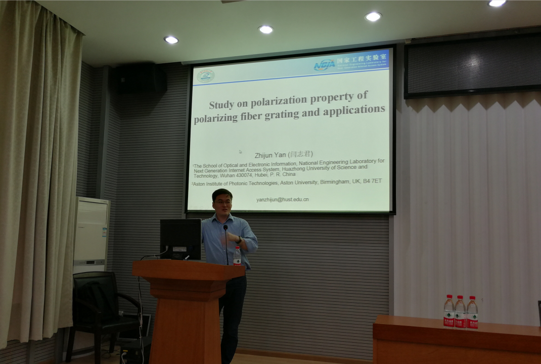 应pp电子官方网站院长丁华锋教授及科发院邀请,华中科技大学光学与电子信息学院闫志君博士于10月9号来我院作题为“倾斜光纤光栅偏振特性及其应用”学术报告。