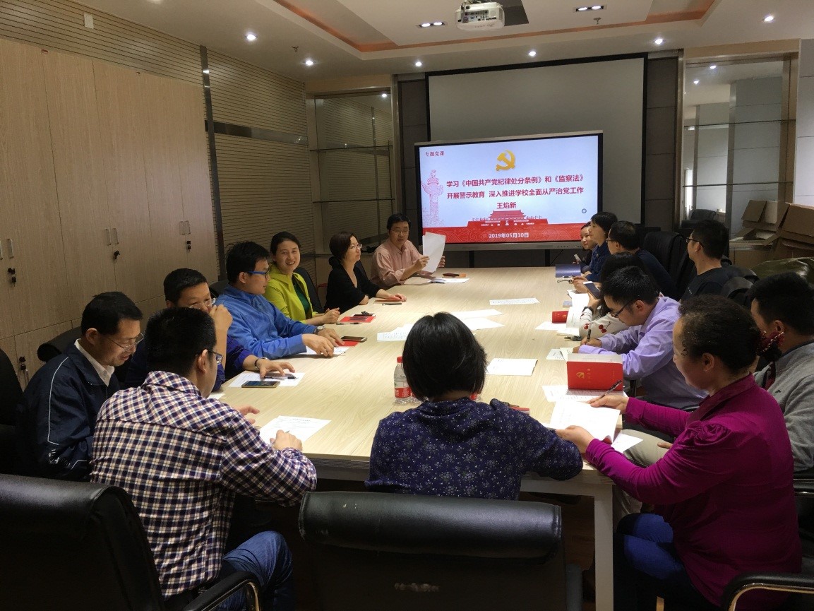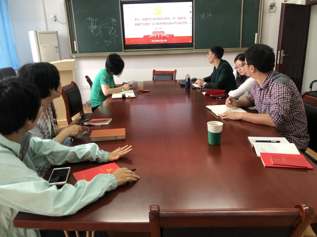 5月30日,pp电子官方网站各党支部组织党员开展主题党日活动,学习《中国共产党纪律处分条例》、《中华人民共和国监察法》、《湖北高校”支部建设年”方案》、《湖北高校党支部规范化建设试点工作方案》、《党政领导干部选拔任用工作条例》,同时学习了习近平总书记在纪念五四运动100周年大会上的讲话精神,并展开了热烈讨论。