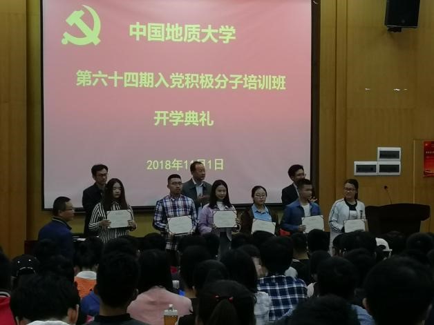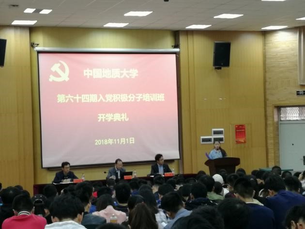 11月1日4:00,pp电子官方网站(武汉)第六十四期入党积极分子培训班开学典礼在教三109举行。校党委书记何光彩老师、组织部副部长刘治国老师、组织部朱丹老师及全体六十四期入党积极分子参加典礼。