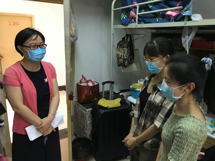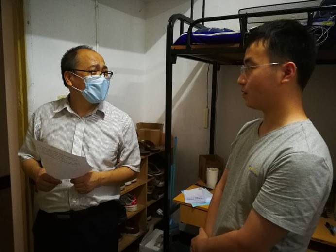 你展云帆济沧海,我挂婵娟待子还。为欢迎各位毕业生返校,荷花池前树立起以“心系家国,不负韶华”为主题的毕业墙,教二楼前“南望山下,荷花池畔,朝思暮想,盼君归来”的横幅格外醒目,6月24日,pp电子第一批返校毕业生顺利“回家”。当天下午,学院党委书记瞿祥华,党委副书记于晓舟,副院长李波、副院长文国军、副院长罗杰和毕业研究生导师、毕业本科年级班主任、全体辅导员分组走访返校毕业生宿舍,了解同学们的思想动态,为各位毕业生送去学院的关心和祝福。