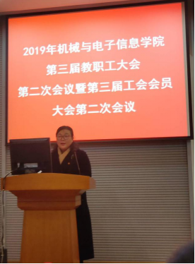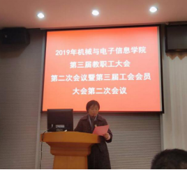 (机电学院工会高翟)2019年12月27日下午,pp电子官方网站第三届教职工大会第二次会议暨第三届工会会员大会第二次会议在教二楼301会堂隆重召开。校工会副主席于荣萍同志及机电学院全体教职工与会,会议由机电学院党委副书记于晓舟同志主持。