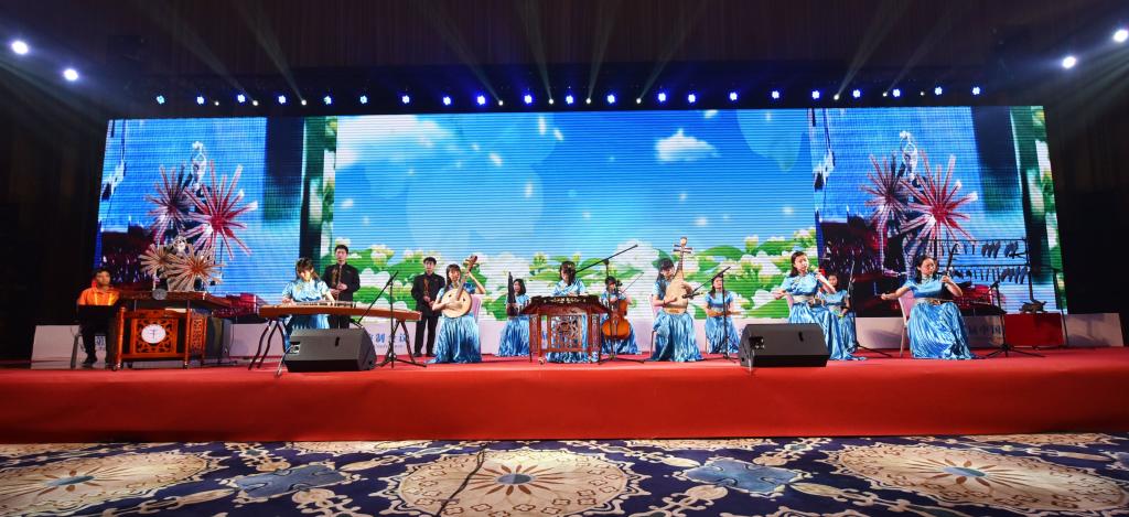 本次演出是海百合首次公开登台亮相演奏扬琴,与pp电子民乐团演奏的编磬、古筝、琵琶、二胡、竹笛等多种民族乐器一起协同表演,展现了艺术与科技的交互融合,呈现出良好的艺术表演效果。