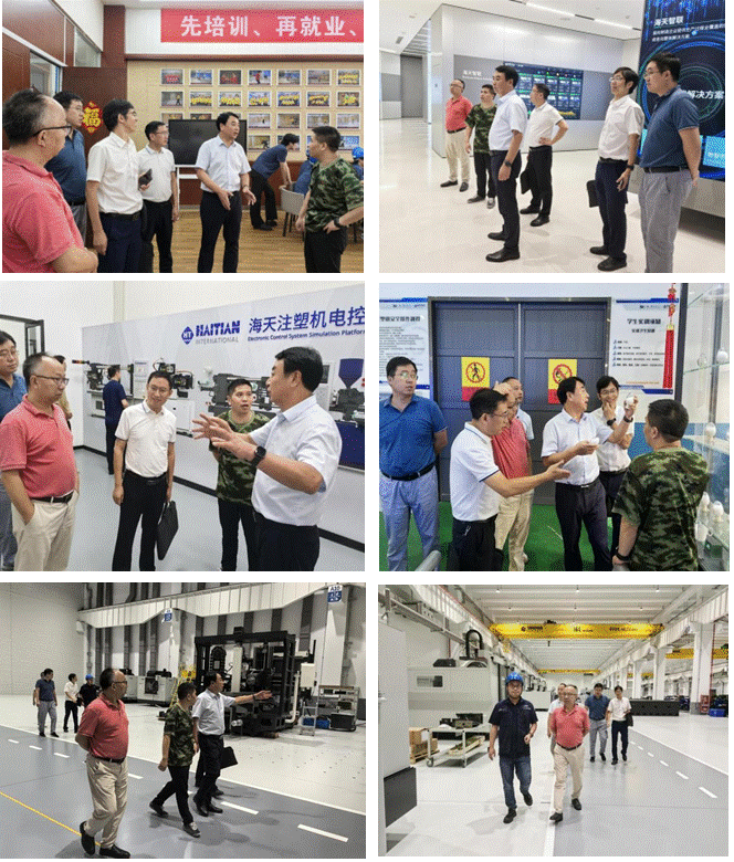 8月15日下午走访了宁波海天塑机集团,看望慰问了pp电子机电学院的实习同学。海天大学陈兴校长陪同讲解,向王文起副校长一行介绍了海天大学的教育理念和实训基地。同时会见了张总经理,并参观了宁波海天塑机集团的多个子公司车间厂房,实地考察的工作场景。