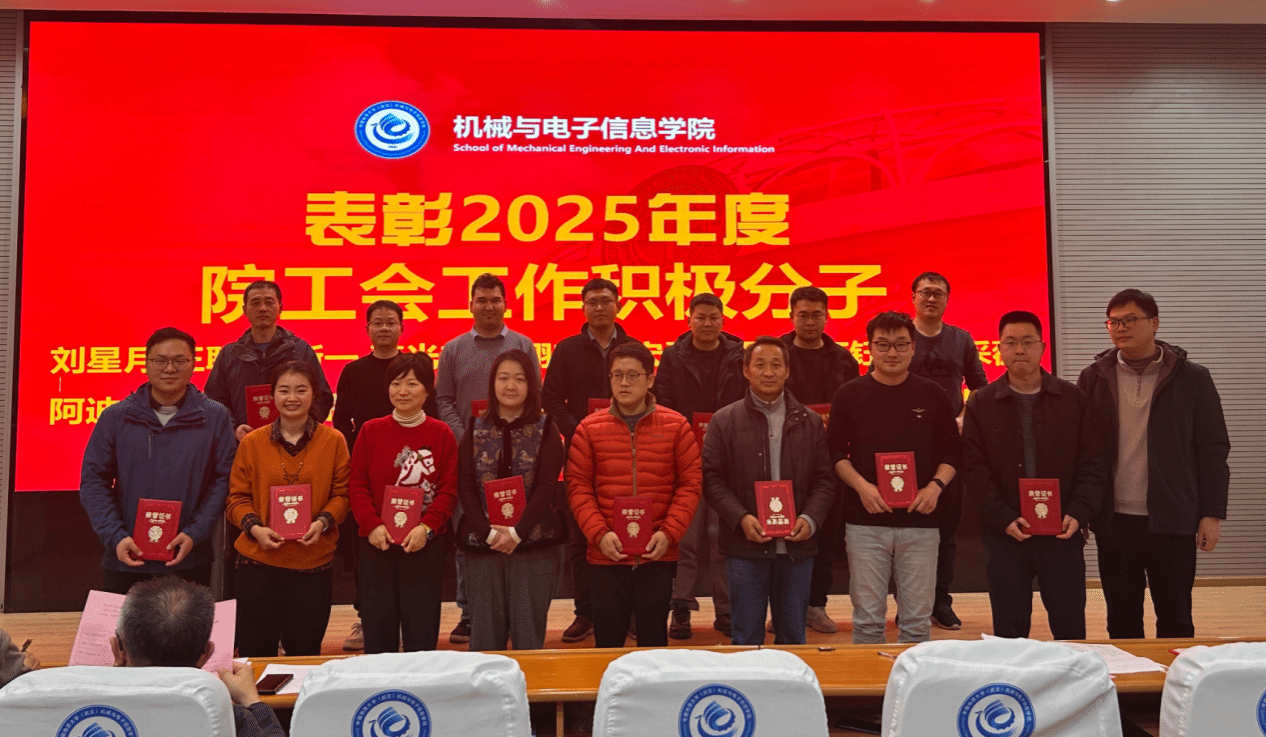会议的重要环节之一是先进表彰。大会主持人宣读了关于表彰2025年学科建设、教学、科研等突出贡献奖的决定,对一年来在各项工作中表现优异的个人进行了隆重表彰。宁伏龙、瞿祥华等学院领导分别为校级“年度考核优秀”、院级“年度考核优秀”、“实验室先进工作”、“工会工作积极分子”、“学科专业建设突出贡献奖”、“教学贡献奖”、“科研贡献奖”、“人才突破奖”、“学生党建特别贡献奖”及“学院突出贡献奖”获得者颁奖。获奖代表们登台领奖,脸上洋溢着笑容,台下阵阵掌声既是对先进者的祝贺,更是对全院教职工拼搏奋进的激励。