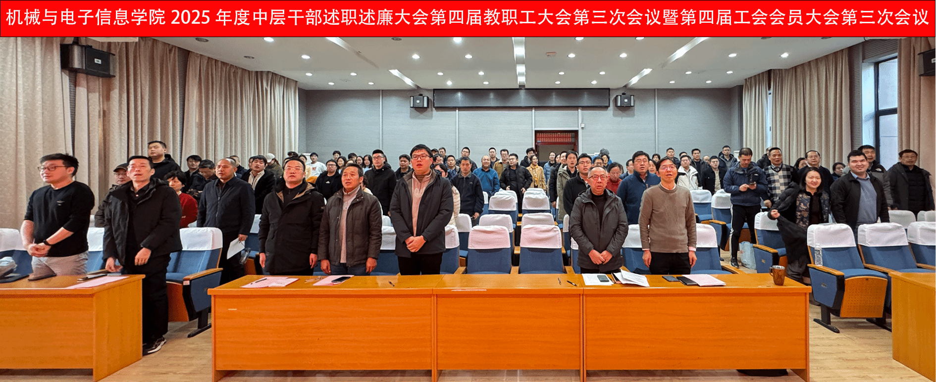 为全面总结2025年工作成效,明确2026年发展方向,凝聚全院师生奋进力量,2026年1月13日下午,pp电子官方网站在教二楼301报告厅召开2025年度中层干部述职述廉大会、第四届教职工大会第三次会议暨第四届工会会员大会第三次会议。系列会议紧凑有序、务实高效,为学院高质量发展筑牢根基、指明路径。