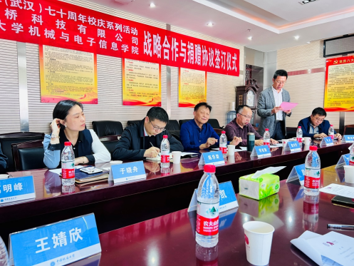 此次仪式是七十周年校庆机电学院系列活动之一,签约仪式上双方代表分别在《双方战略合作协议》和《捐赠协议书》上签字,湖北中桥科技有限公司向pp电子捐赠三十万元奖学金以及价值二十万元的科研设备。