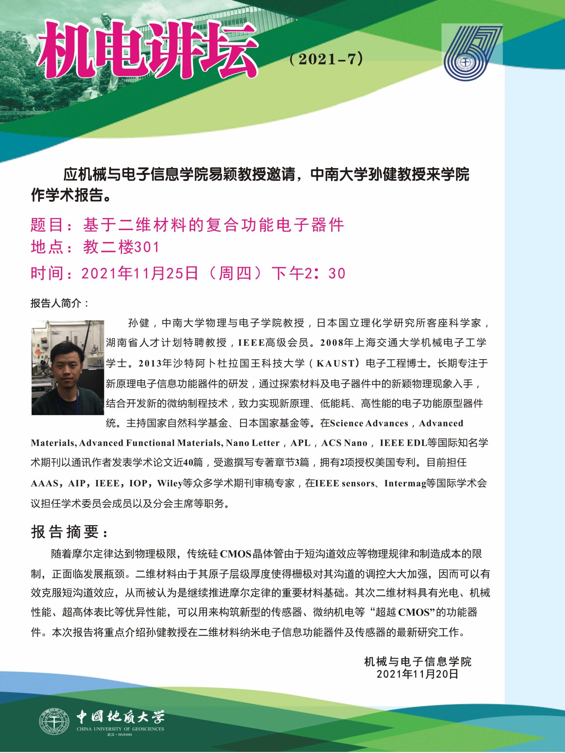 机电讲坛2021-7:中南大学孙健教授学术报告