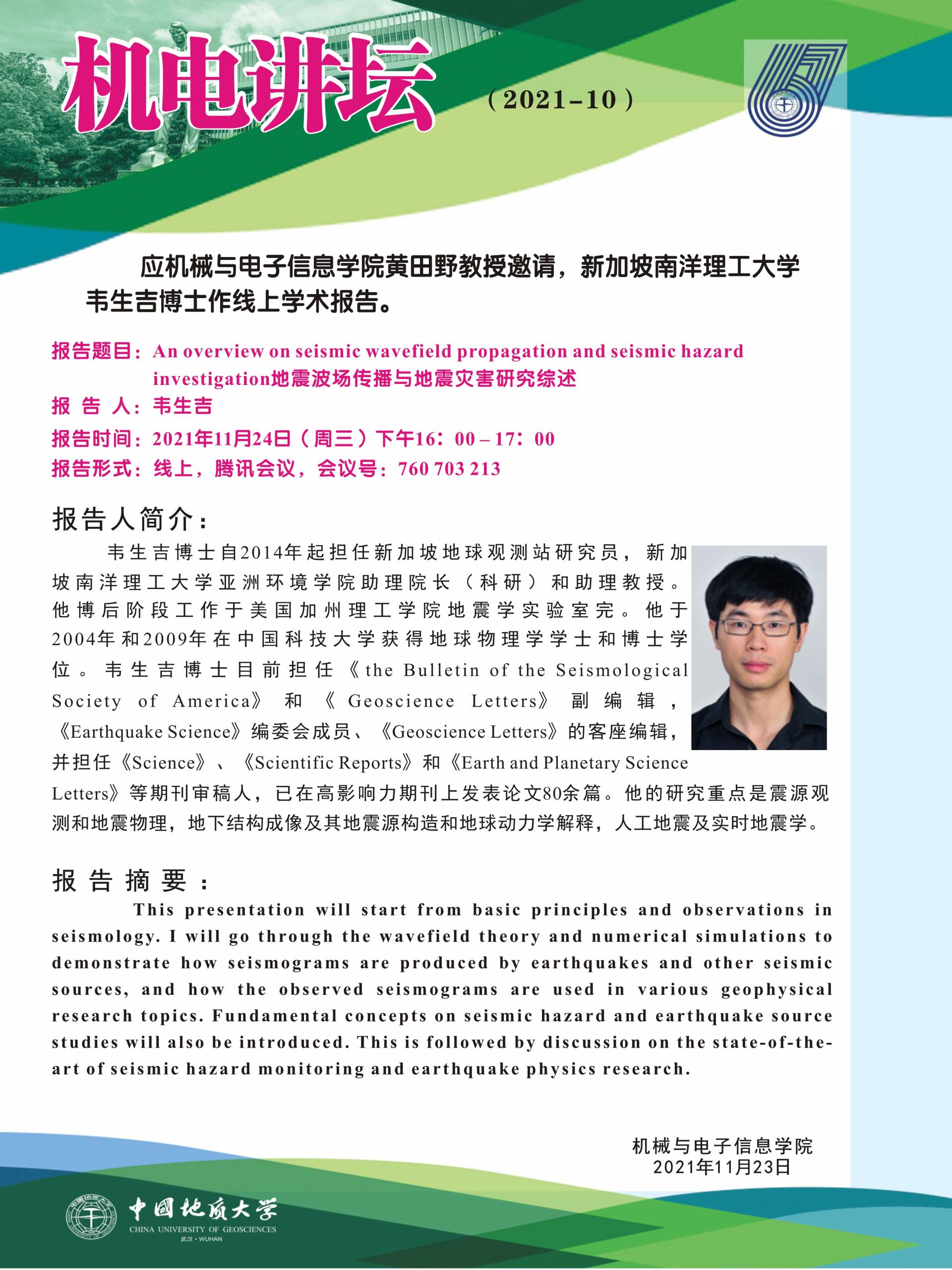 【11月24】机电学学术论坛:新加坡南洋理工大学韦生吉博士学术报告