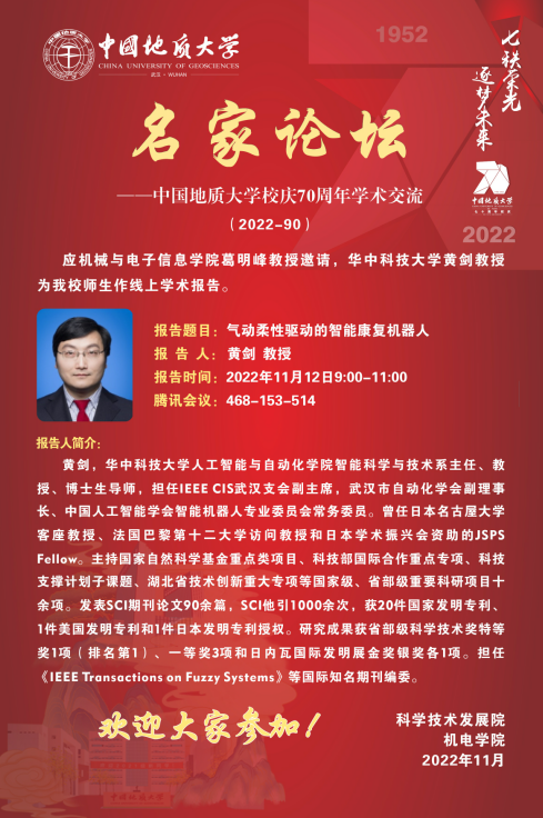 【11月12日】校庆系列学术活动---名家论坛(2022-90):华中科技大学黄剑教授