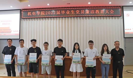 6月20日下午,机电学院2022届毕业生党员廉洁教育大会在教二楼301举行。学院党委书记瞿祥华出席大会,全体毕业生党员参加大会,学院学生党建工作辅导员刘彪主持大会。