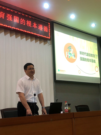 6月21日晚,校党委常委、副校长刘杰教授应邀为机电学院学生骨干讲授题为《新时代建设教育强国的根本遵循》专题思政课,学院党委副书记于晓舟,学工组全体老师,学生组织和各年级主要学生骨干到场学习。