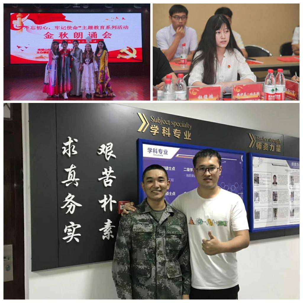 在优秀学长们的带领下,机电学院的青年学子们将爱国深情刻入心底,在各自的学习生活中不断展现出机电青年的靓丽风采——2015级本科生刘熠、2017级本科生陈彦伟志愿参军入伍,用汗水在青春画卷上挥洒一抹军绿;2019级本科生朱心禹将爱国爱校汇聚笔尖,用版绘画出祖国变迁献礼70华诞,带领团队用原创手绘日历向2020年的地大问好;2017级本科生热伊莱·吐尔洪参加教育部部长陈宝生来校调研座谈会及学校国庆座谈会,代表学校广大少数民族同学向伟大祖国告白;2019级本科生玛吾叶·加尔恒同学在学校“民族团结一家亲”主题演讲比赛中获得一等奖。