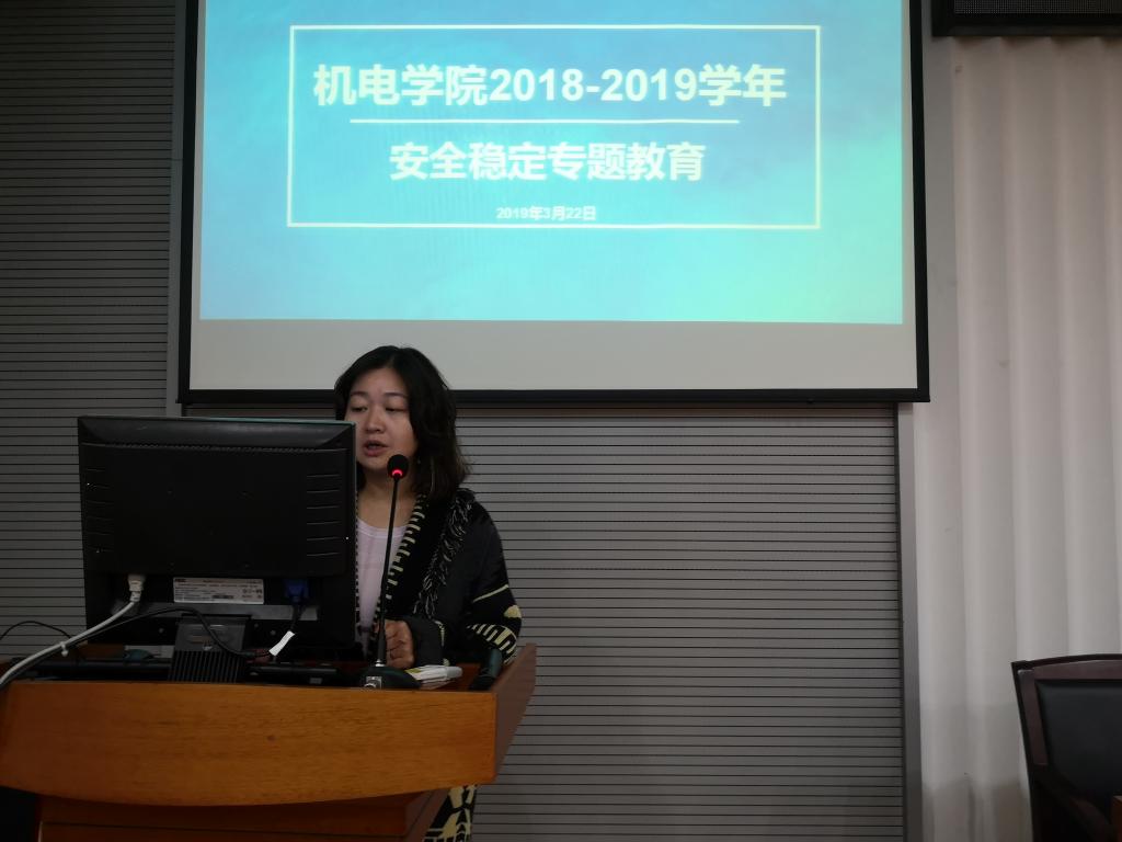 (通讯员 罗采薇 晁好喜 摄影 李红慧)3月22日中午12时30分,机电学院2018-2019学年安全稳定专题教育大会于教二楼301会议室准时开始。机电学院学工组老师罗采薇主持会议,杜育、许小康、丁钰峰以及机电学院全体新疆籍学生出席此次专题教育大会。