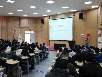 杜育就本学期的相关工作以及注意事项给同学们做了详细的介绍。他督促还未签约的同学抓住春招的机会,关注各类就业信息,注意三方协议的操作流程,争取早日签约。同时他提醒同学们要仔细核查专业培养方案,多与教务科沟通,尽快补回所差课程,顺利毕业。关于安全文明和日常纪律,杜育强调要注意防火、防盗、防骗和防非法校园贷,注重身心健康,遵守日常纪律。最后,杜育向同学们介绍了毕业季的相关活动,希望同学们能够积极参与,健康快乐的度过大学的最后一个学期。