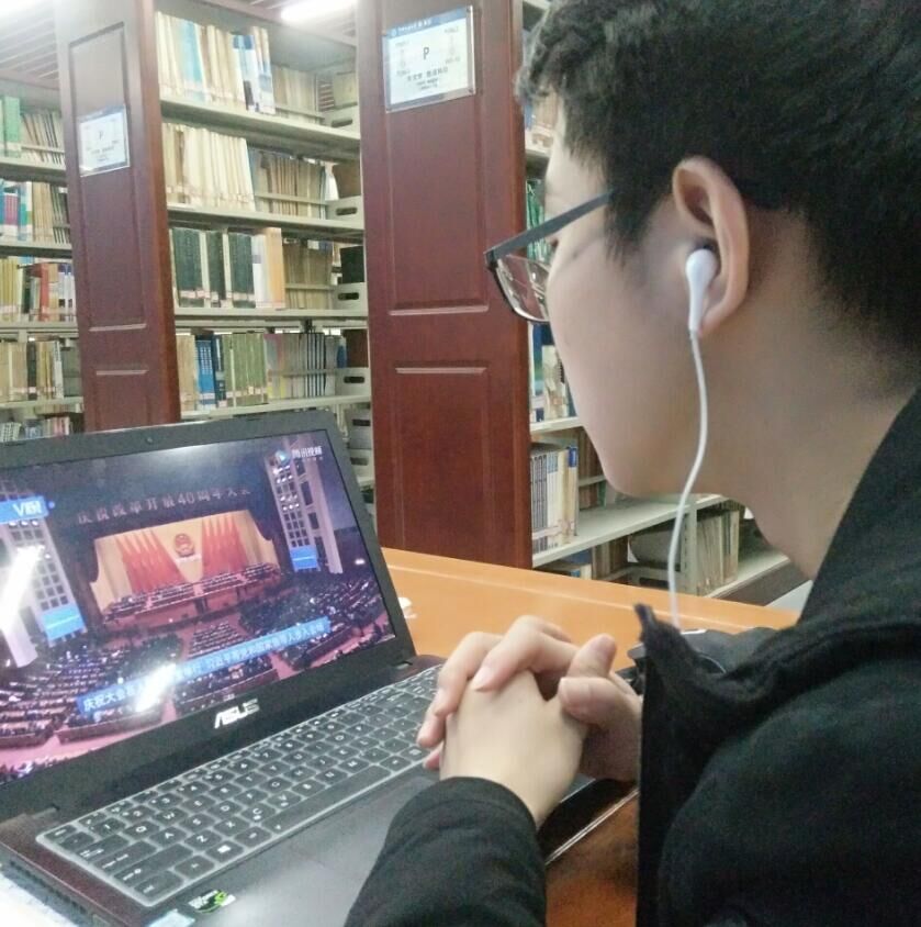 学院团委书记杜育在看完直播后谈到,改革开放是五四运动以来我国发生的三大历史事件之一,是实现中华民族伟大复兴的重要里程碑。改革开放四十年来,中国人民和中华民族在中国共产党的坚强领导下完成了历史性的伟大飞跃,绘就了一幅波澜壮阔、气势恢宏的历史画卷。我为祖国40年来取得的伟大成就感到无比的自豪。今天的会议是庆祝的大会,同时也是历史使命传承的大会。改革开放只有进行时,没有完成时。正如总书记所说:“我们所处的是一个愈进愈难、愈进愈险而又不进则退、非进不可的时候,摆在全党全国各族人民面前的使命更光荣、任务更艰巨、挑战更严峻、工作更伟大”。作为新时代的青年大学生,我们应牢固树立“四个意识”,坚定“四个自信”,坚决做到“两个维护”,主动担负起民族复兴的历史使命,学习受表彰的改革先锋们的改革精神和先进事迹,学好科学文化知识,练就过硬本领,将改革进行到底,在新时代的改革浪潮中建功立业,做出自己应有的贡献。