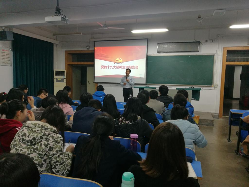 (通讯员 胡畔)11月28日晚,pp电子全体学生党员在教一楼205开展党的十九大精神学习活动。本次学习活动邀请到武汉市招商局副局长胡何宇同志担任主讲嘉宾。