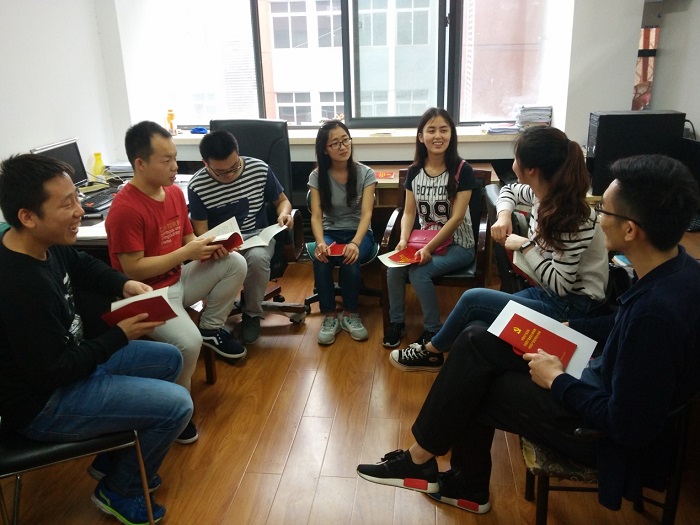 首先,各成员重温了入党誓词,感受入党初时的热血和激情。随后,支部成员在支部书记的带领下,深入学习了党章的纲领及第一章——党员的主要内容,重温我党的发展历程,领悟我党方针政策,感受党章对党员的要求与职责。在谈感悟时,张文君同志从大方面谈到,“党员的权利与义务要随时代的发展而被赋予新的意义,富强、民主、文明、和谐、自由、平等、公正、法治、爱国、敬业、诚信、友善的社会主义核心价值观应渗透到每个党员、每个人的日常生活中。新一代的学生党员要在社会的发展和进步中,紧跟时代步伐,不忘根本,志存高远,脚踏实地,求真务实。”在交流互评中,徐晴同志针对张文君的发言指出“就小处而言,作为学生党员,最关键的还是能在各个方面做好先锋模范作用,包括道德、学习、科研及工作。以梦为马,不负韶华。”随后,钟剑文同志就徐晴的发言指出,“新生代学生党员要除了做好先锋模范作用外,要敢于有自己的想法,积极探索新的发展形式,为社会主义建设发掘更多的可能。”其余成员也在谈论中积极发表了自己的看法。
